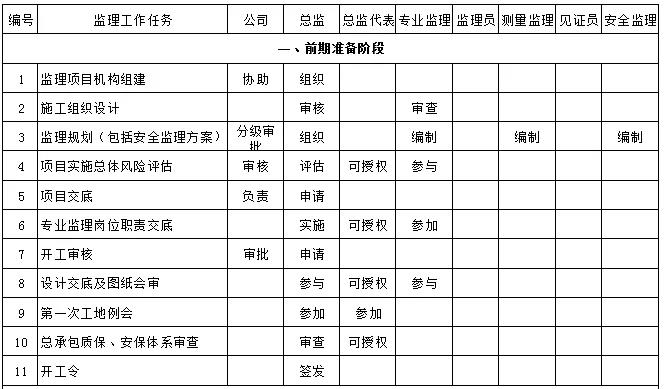 监理工作职责分配一览表,职责划分明明白白!