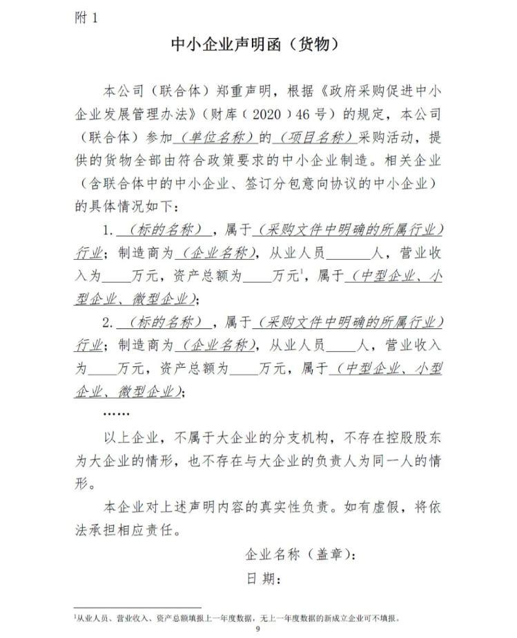 1.中小企业声明函