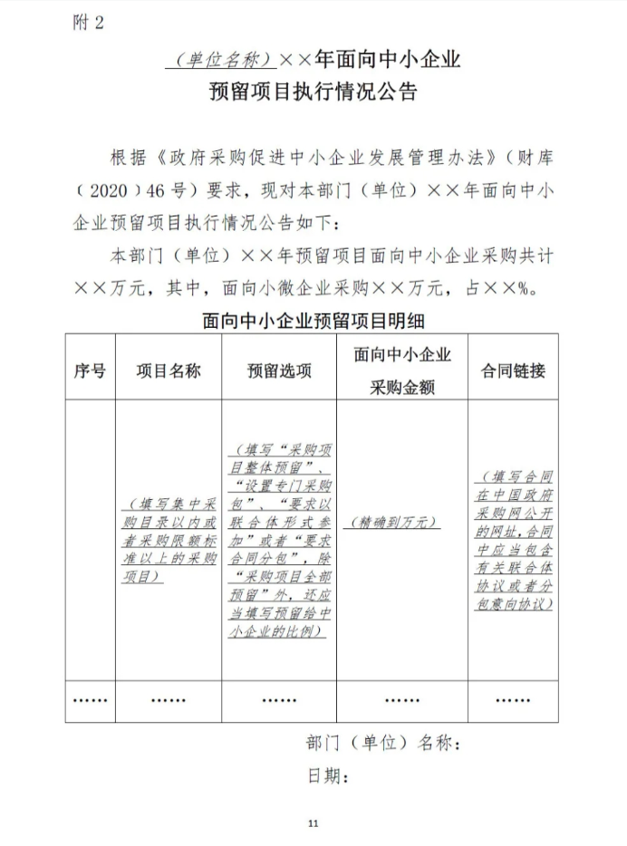 2.面向中小企业预留项目执行情况公告